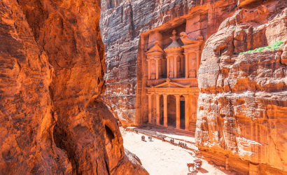 - Petra: Enter the fabled city of Petra through the narrow Siq, unveiling the majestic Treasury and the city’s royal tombs, theaters, and hidden sacrificial altars, carved into rose-colored rocks.